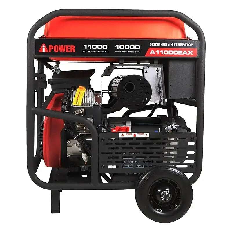 Бензиновый генератор A-iPower A11000EAX предназначен для автономного электроснабжения потребителей однофазного тока. Номинальная мощность составляет 10 кВт. Устройство оснащено электростартером и разъемом для подключения блока автоматического ввода резерва — АВР. Отличительная черта этой модели — способность выдерживать кратковременную индуктивную нагрузку до 20 кВА, что позволяет подключать электрооборудование с высоким пусковым током. Топливный бак объемом 45 л обеспечивает около 8 часов непрерывной работы при 100%-ной нагрузке.