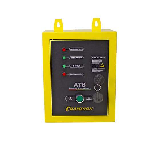 Генератор CHAMPION GG6501E+ATS оснащается вместительным топливным баком, что в совокупности с низким расходом топлива обеспечивает возможность продолжительной работы без дозаправки. Медная обмотка статора и щеточного ротора способствует надежности и долговечности. Для маневренности и легкости транспортировки в конструкции модели предусматривается наличие больших колес и складных рукоятей. Металлическая силовая рама защищает оборудование от повреждений при механических воздействиях. На панели управления располагаются стрелочный вольтметр для контроля напряжения и три розетки для быстрого подключения потребителей.