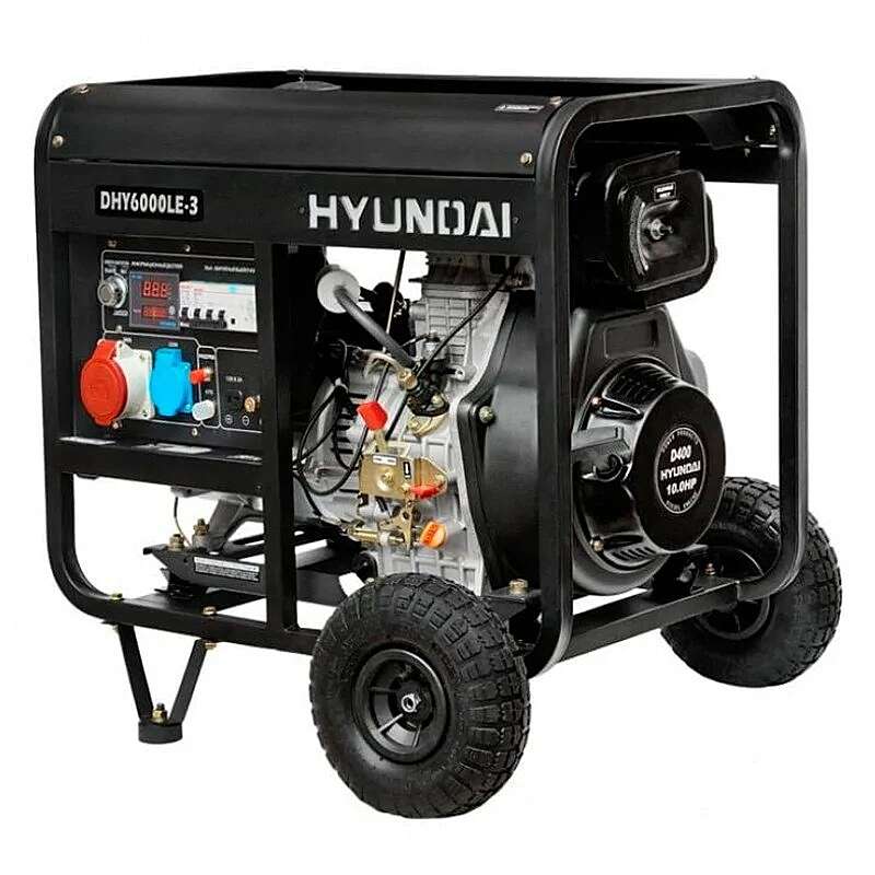Дизельный генератор Hyundai DHY 6000LE-3 востребован в гараже, на строительной площадке или в ремонтной мастерской в качестве основного или резервного источника однофазного и трехфазного тока.