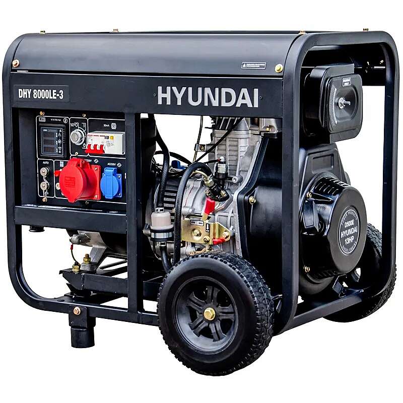 Дизельный генератор Hyundai DHY 8000LE-3 подойдет как для питания однофазного оборудования мощностью до 2 кВт, так и трехфазного до 6 кВт. За счет функции подогрева двигателя вы можете запускать его при температуре до -5 °C. Благодаря этому генератор можно размещать на улице или в хозяйственных постройках. Портативная электростанция используется для питания частного дома, обеспечения работы инструментов в мастерской или гараже, на строительной площадке или в торговой точке.