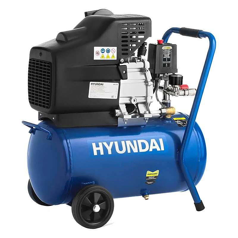 Воздушный компрессор HYUNDAI масляный HYC 2324 снабжен автоматикой, которая обеспечивает длительную эксплуатацию устройства. При достижении давления 8 атм компрессор автоматически выключается, при этом происходит разгрузка цилиндров. Для обеспечения облегченного запуска электродвигателя предусмотрен стравливающий клапан, который остается открытым 1-2 сек. после включения двигателя.