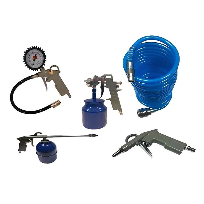 Набор для компрессора HAC 5 SET – это оборудование, которое работает от компрессора с помощью энергии сжатого воздуха. У пневмоинструмента производительность больше, чем у электрического оборудования. Отлично подходит ко всем компрессорам HYUNDAI.