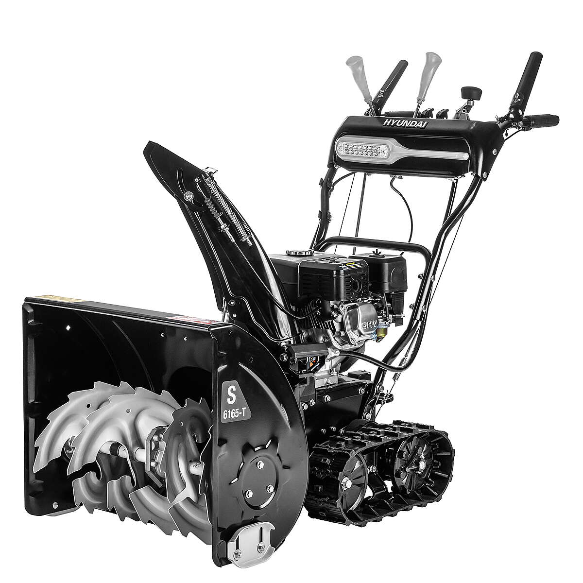 Бензиновый снегоуборщик Hyundai S 6165-T — это мощная самоходная машина экспертного класса с гусеничным шасси, предназначенная для эффективной уборки снега на больших и сложных участках, включая склоны и обледеневшие поверхности.